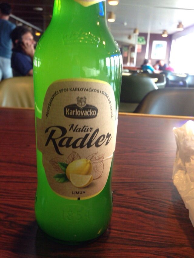 フェリー内でも食事は買えるが割高になるのでスプリトの町で買っておいたレモンビールで一人晩酌。さっぱりしていてうまし。
