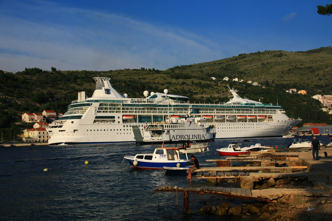 超豪華客船がとまってた。ブルジョワどもが乗っているのだろう。