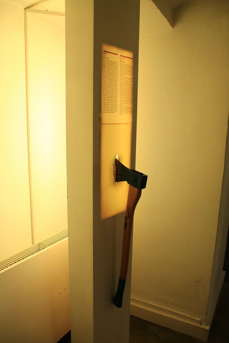 この斧は別れた男が家具を破壊した時に使ったやつらしい。ぱっと見シャイニング。